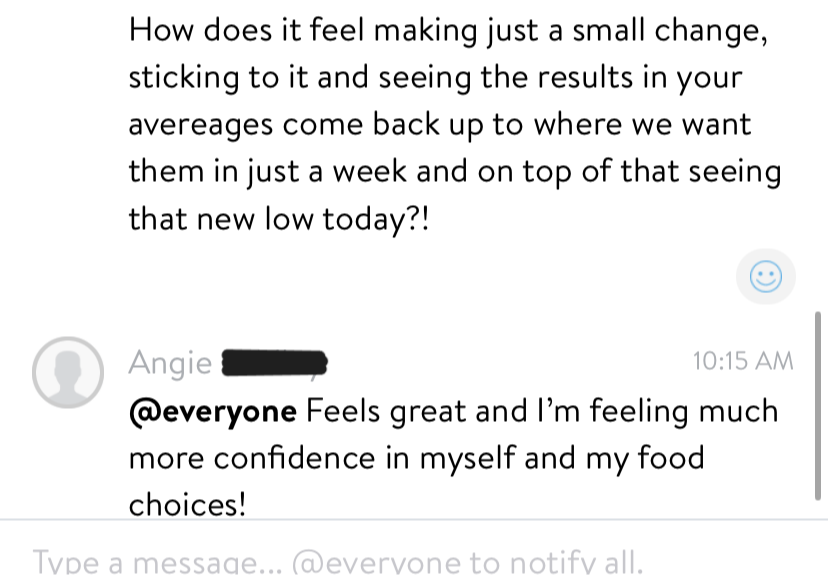 - Had a huge change in mindset like having no foods that are off limits.